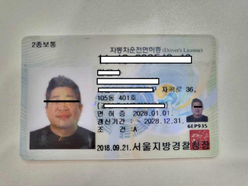 Bản gốc của bằng lái xe do Hàn Quốc cấp và còn thời gian sử dụng đúng quy định.