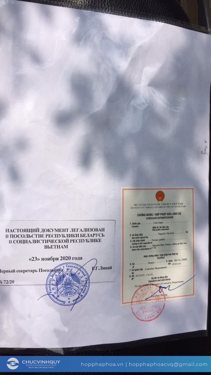 Bạn đang cần giấy chứng nhận hợp pháp hoá lãnh sự đại sứ quán Belarus nhưng chưa có kinh nghiệm và không biết bắt đầu từ đâu? Hãy để Chúc Quý Vinh thay bạn hoàn thành mọi thủ tục, giấy tờ hồ sơ đề nghị chứng nhận lãnh sự quán, bạn sẽ không không phải trì hoãn công việc hay học tập. Ngoài ra, bạn có thể tham khảo thêm một số thủ tục hành chính khác: