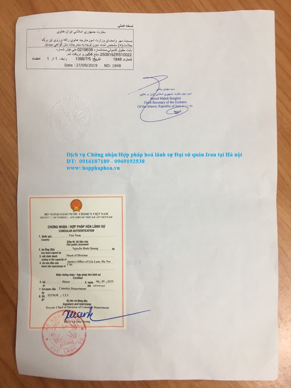 100% khách hàng đã sử dụng dịch vụ chứng nhận hợp pháp hoá lãnh sự tại Đại sứ quán Iran tại Chúc Vinh Quý đều hài lòng bởi: