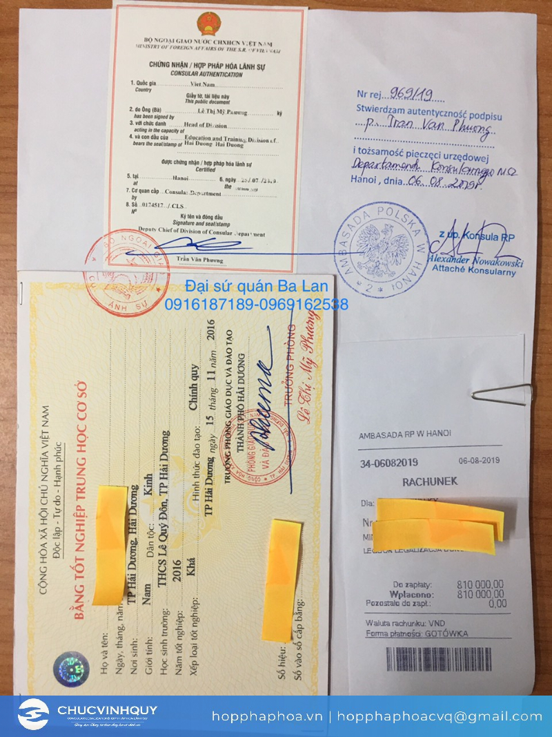 Chứng nhận lãnh sự Đại sứ quán Ba lan với bằng tốt nghiệp THPT