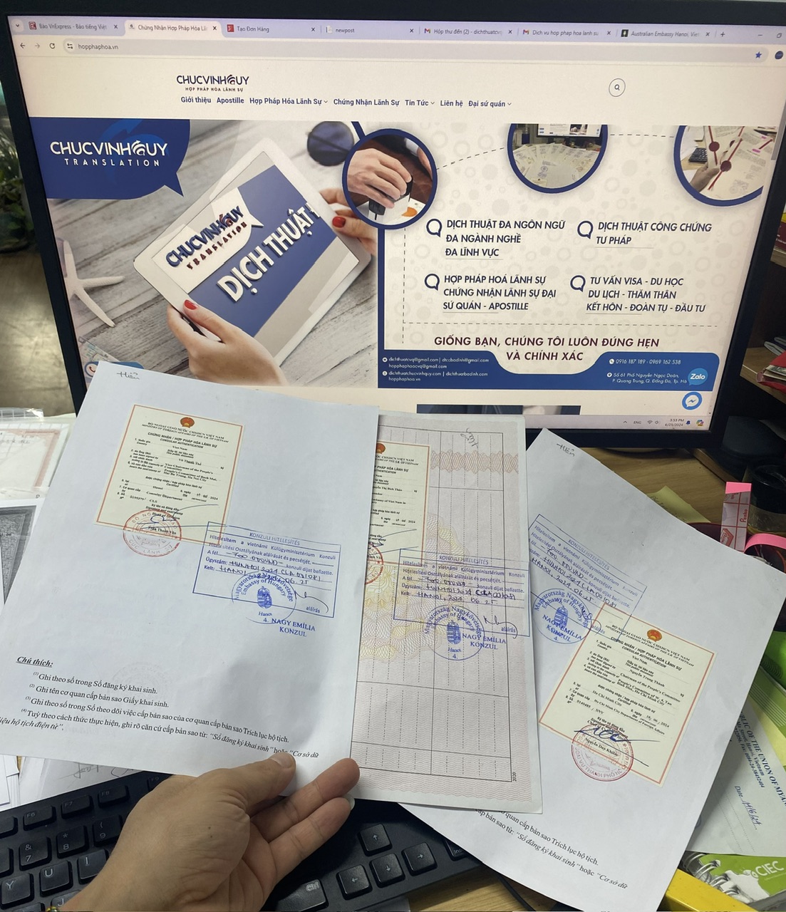 Hoàn thành thêm Đại sứ quán Hungary tại Hà Nội cho các giấy tờ cá nhân do Việt Nam cấp để sử dụng tại Hungary. Dịch vụ được thực hiện bởi Công ty Chúc Vinh Quý.