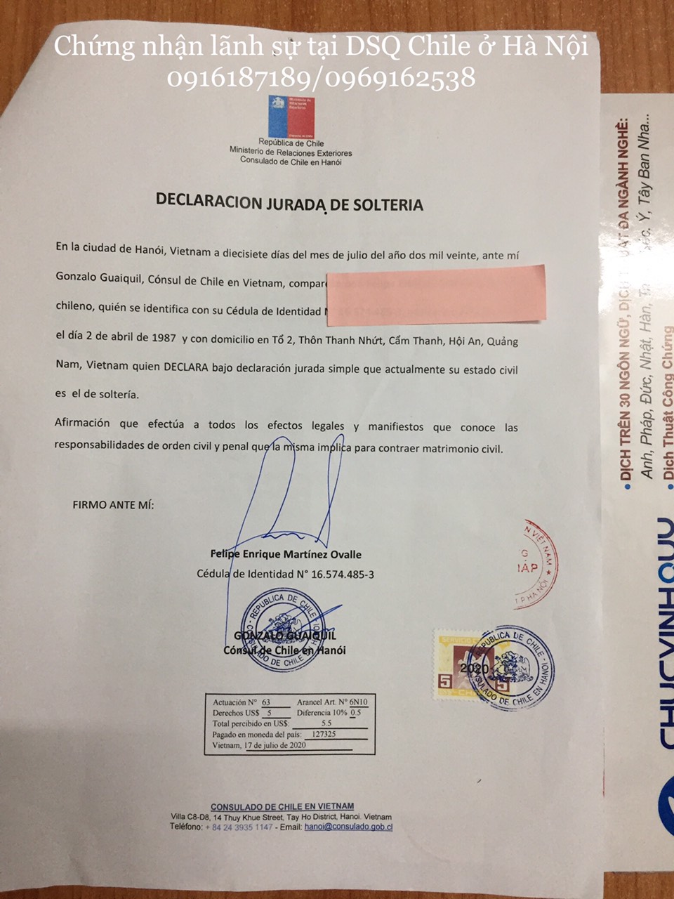 Chúc Vinh Quý- Nhận dịch vụ chứng nhận lãnh sự/ hợp pháp hóa lãnh sự Chile