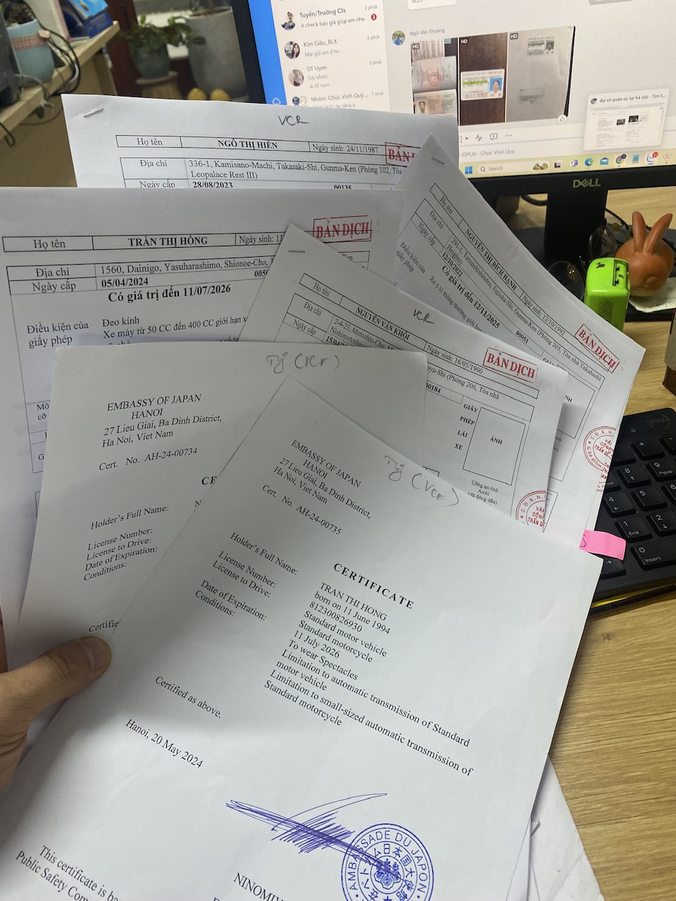 Giấy phép lái xe được thực hiện chứng nhận lãnh sự tại Đại sứ quán Nhật, Hà Nội và Cục lãnh sự thuộc Bộ Ngoại Giao Việt Nam sau đó được dịch thuật ông chứng sang tiếng Việt và chuyển đổi giấy phép lái xe tại Sở giao thông vận tải nơi công dân thường trú, tạm trú.