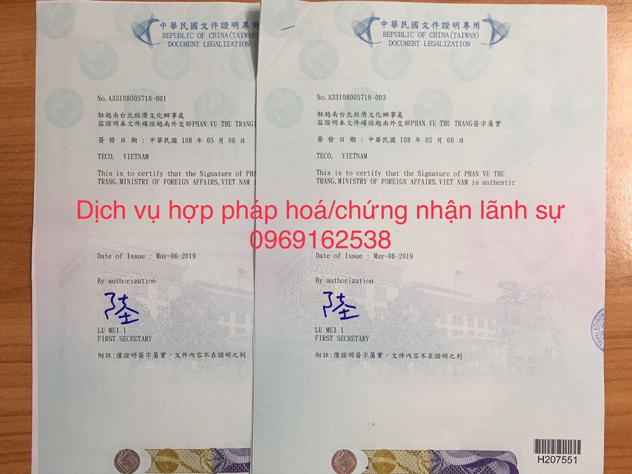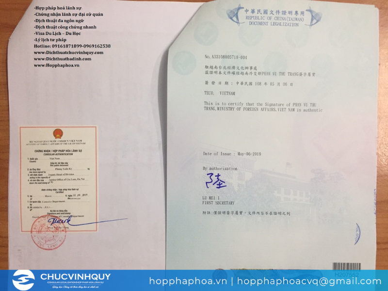 Chúc Quý Vinh cung cấp dịch vụ chứng nhận hợp pháp hoá lãnh sự văn phòng kinh tế văn hoá đại bắc. Thay vì quý khách ngồi đau đầu sắp xếp thời gian quý báu để tự đi giấy chứng nhận tại đại sứ quán Đài Loan, rồi lại ngồi chờ dài kết quả thì chúng tôi sẽ thay quý khách làm mọi việc đó trong thời gian cực ngắn với chi phí cực rẻ. Ngoài ra, Quý khách có thể tham khảo thêm một số dịch vụ khác: